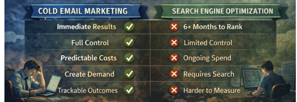 Cold Email Marketing vs SEO: Why Smart Businesses Choose Results Today, Not Promises Tomorrow