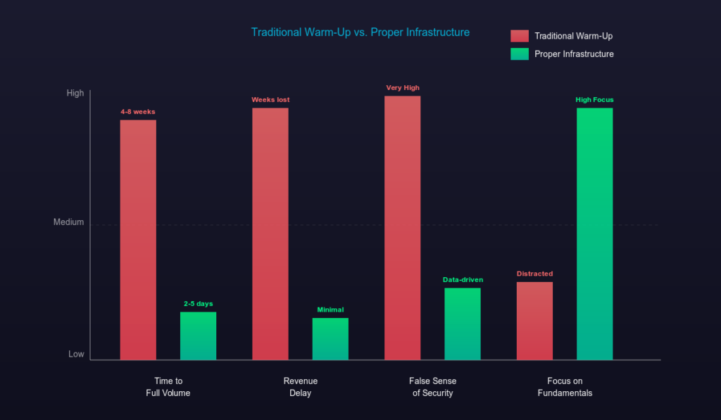 If warm-up is theater, what’s the real show? Three things determine deliverability at scale: